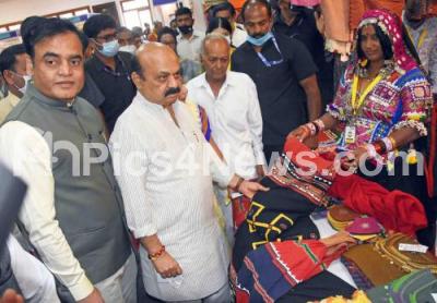 Photo Caption : CM Basavaraj Bommai and Minister Ashwath Narayan inaugurating the Women Business Mela as a part of International Womens Day at Vidhana Soudha, in Bengaluru on Monday 7th March 2022