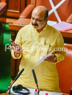 Photo Caption : CM Basavaraj Bommai addressing during assembly session at Vidhana Soudha, in Bengaluru on Tuesday 8th March 2022