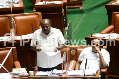 Photo Caption : Former CM and JD(S) Leader HD Kumarswamy addressing during Assembly session at Vidhana Soudha, in Bengaluru on Wednesday 9th March 2022
