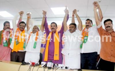 Photo Caption : BJP State President Nalin Kumar Kateel and BJP Ministers and MLAs celebrating the BJP victory in UP, Goa, Manipur and Uttarakhand Assembly elections at BJP office , in Bengaluru on Thursday 10th March 2022