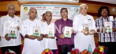 Photo Caption : Prof. KE Radakrishna releasing a book titled "Boomtayi" with Book Author Janagere Venkataramaiah, Prof. SG Siddaramaiah, BM Haneef, Prof. H Dandappa and others at Gandhi Bhavan, in Bengaluru on Saturday 12th March 2022