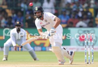Photo Caption : Hanuma Vihari of India during the first day of the second cricket test match between India and Sri Lanka in Bengaluru, India, Saturday, March 12, 2022. Photo by : Surjeet Yadav, Bangalore News Photos.