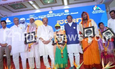 CM Basavaraj Bommai with Minister KS Eshwarappa and others inaugurated the NREGA 2022 festival and presented NREGA 2021 2022 State Awards during program Vidhana Soudha , in Bengaluru on Monday 14th March 2022