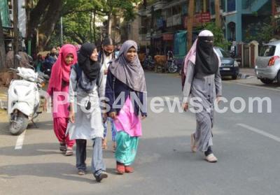 Students wearing veil and Hijab arriving to attend classes at a school near Frazer Town, as Karnataka high Court backed a ban on hijabs in classrooms in the Hijab controversy, in Bengaluru on Tuesday 15th March 2022