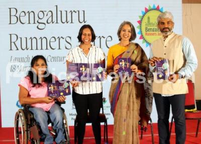 Event Description : Swimmer Nisha Millet with International para athlete Malathi Holla and others during a press conference on "Bengaluru Runners Jatre" at Century Club, in Bengaluru on Friday 18th March 2022