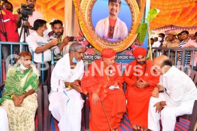 Photo Caption : Chief Minister of Karnataka Basavaraja Bommai consoling the family members of Naveen Shekharappa a MBBS student who was killed in a shelling attack in war-torn Ukraine, after his mortal remains arrived his native place Chalegeri Village, Haveri District, in Haveri on Monday 21st March 2022