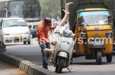 Event Description : A man carrying mannequin for cloth shop on his scooter, in Bengaluru on Tuesday 22nd March 2022