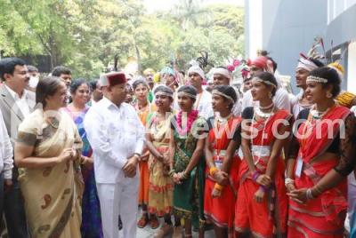 Event Description : Governor of Karnataka Thaawar Chand Ghelot interacting with students during valedictory of 13th Tribal Youth Exchange programme at Yavanika, in Bengaluru on Thursday 31st March 2022