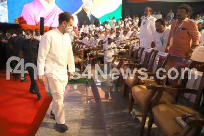 Photo Caption : Congress Leader Rahul Gandhi seen during a meeting with Congress MPs, MLAs, MLCs and state leaders at KPCC office, in Bengaluru on Friday 1st April 2022