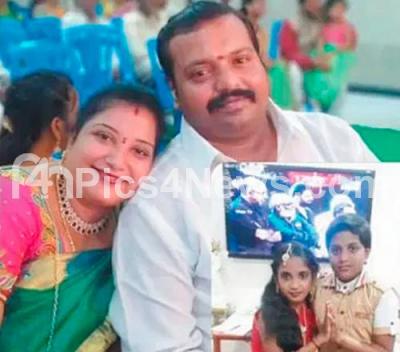 Photo Caption : A file photo Venkat Prashanth and his wife Chandrakala, Children Adwik and Prerana, who suffocated to death in a room after the house caught fire due to an electric short circuit and subsequent leakage from an air conditioner in Mariyammanahalli late Thursday, in Bengaluru on Friday 8th April 2022