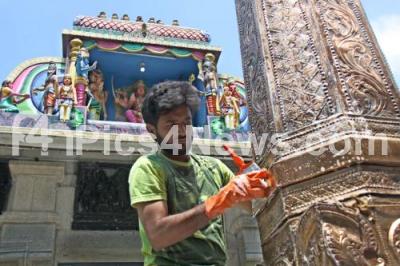 Photo Caption : Painting and cleaning process began at Dharmaraya Temple ahead of Karaga festival, in Bengaluru on Friday 8th April 2022