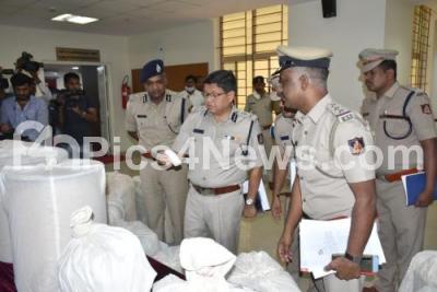 Photo Caption : Police Commissioner Kamal Panth and Police officials inspect the seized drugs worth 1.45 Crore during a press conference at Police Commissioner office, in Bengaluru on Friday 8th April 2022