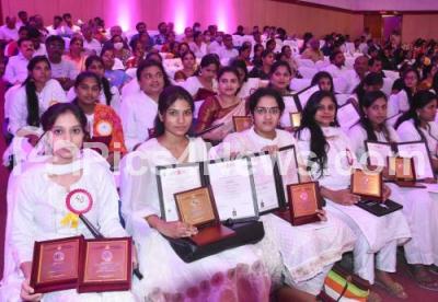 Photo Caption : Students of Bengaluru University with their certificates and Gold medals during First Annual Convocation 2022 of Bengaluru University, in Bengaluru on Monday 11th April 2022