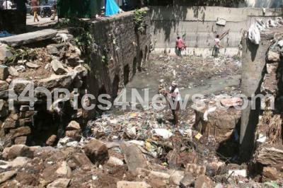 Photo Caption : Rajakaluve drainage being cleaned by workers at Kamakya layout, due to last night rainfall, in Bengaluru on Friday 15th April 2022