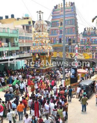 Photo Caption : Devotees seen during Karaga Festival at Dharmaraya temple, in Bengaluru on Saturday 16th April 2022