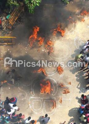 Photo Caption : Devotees burn Karpoora during Karaga Festival at Dharmaraya temple, in Bengaluru on Saturday 16th April 2022