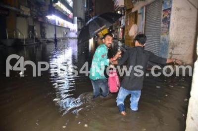 Photo Caption : Rain water flooded at Sulthanpete due to heavy rainfall, in Bengaluru on Saturday 16th April 2022