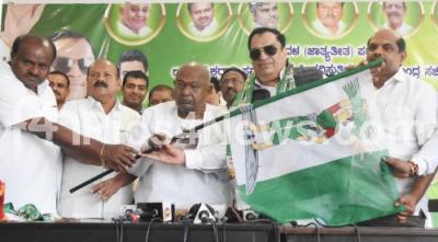 Congress leader and MLC CM Ibrahim joined JD(S) Party and taking charge as a State President of JDS in the presence of JD(S) Supremo HD Devegowda, Former CM HD Kumarswamy, MLA HK Kumarswamy and others at JP Bhavan, in Bengaluru on Sunday 17th April 2022