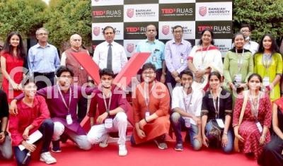 Photo Caption : Dr. N Sai Baba, Registrar, Dr. KK Raina, Vice Chancellor and Students during curtain raiser of TEDx RUAS, in Bengaluru on Thursday 21st April 2022
