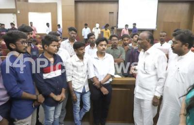 Event Description : Minister MTB Nagaraju interacting with the students ,during inauguration of "Shilpa Gurukula" event at Vikasa Soudha, also seen D Roopa Moudgil, IGP, MD, Karnataka Handicrafts Development Board and others, in Bengaluru on Friday 22nd April 2022