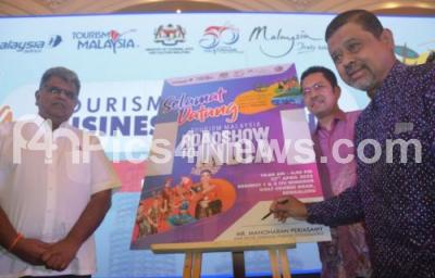 Photo Caption : Razaidi Abd Rahim, Director South India and Sri Lanka, Malaysia Tourism Promotion board with Ganneesh Ramaa, Malaysian Association of Tour and Travel Agents and Manoharan Periasamy, Senior Director International Promotion Division Asia and Africa seen during the press conference on Malaysia Road Show in India at a private hotel, in Bengaluru on Wednesday 27th April 2022