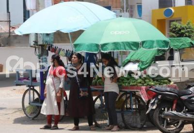 Photo Caption : Roadside vendors are using large colorful umbrellas to beat the hot humid summer afternoon at Ullal Upanagar, in Bengaluru on Friday 29th April 2022