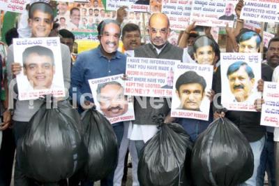 Event Description : Members of Bengaluru City Youth Congress protesting against BJP government Ministers, in Bengaluru on Tuesday 3rd May 2022