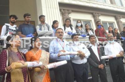 Event Description : Medical students take part in an anti tobacco campaign rally during an awareness programme, in Bengaluru on Thursday 12th May 2022