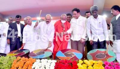 Photo Caption : CM Basavaraj Bommai inaugurating the "Leather Handicrafts" and Exhibition at Palace Grounds, also seen are Sri Maadara Chennaiah Swamjij, Ministers Govind M Karjola, Ashwath Narayan, Kota Srinivas Poojari and others, in Bengaluru on Friday 13th May 2022