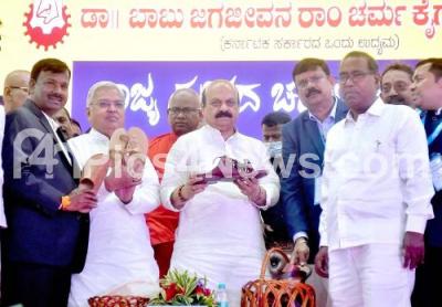 Photo Caption : CM Basavaraj Bommai inaugurating the "Leather Handicrafts" and Exhibition at Palace Grounds, also seen are Sri Maadara Chennaiah Swamjij, Ministers Govind M Karjola, Ashwath Narayan, Kota Srinivas Poojari and others, in Bengaluru on Friday 13th May 2022