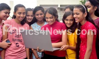 Photo Caption : SSLC students checking their results online after the SSLC Results were announced today, in Bengaluru on Thursday 19th May 2022