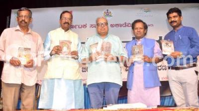 Photo Caption : Senior Writer Dr. HS Venkateshmurthy with Prof. G Mallepuram G Venkatesh, Kariyappa, Registrar, Karnataka Sahitya Academy, Dr. BV Vasanthakumar, President, Karnataka Sahitya Academy releasing Kannada books at Nayana, in Bengaluru on Monday 23rd May 2022