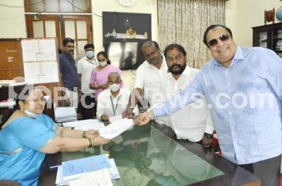 Photo Caption : JD(S) MLC candidate TA Sharavana submitted his nomination form to Election officer at Vidhana Soudha, also seen are JD(S) State President CM Ibrahim and Former CM HD Kumarswamy, in Bengaluru on Tuesday 24th May 2022