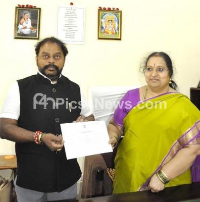 Photo Caption : Electoral Officer Vishalakshi presenting unanimous selection certificate to JD(S) MLC Sharavana at Vidhana Soudha, in Bengaluru on Friday 27th May 2022