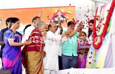 Photo Caption : Chief Minister of Karnataka Basavraj Bommai with Minister Sunil Kumar, MP PC Mohan, MLA Dinesh Gundu Rao, MLC Narayanswamy and others during inauguration of "Amrutha Bharathige Kannadadarathi" as part of 75 year celebrations of Independence Day at Freedom Park, in Bengaluru on Saturday 28th May 2022