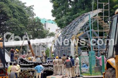 Event Description : Fire personnel rescue operation where four people trapped after a concrete slab of portico that collapsed at St Marthas Hospital, in which four people were injured , in Bengaluru on Tuesday 31st May 2022