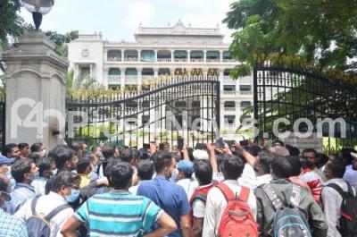 Event Description : KPSC candidates with MLA Suresh Kumar protesting in front of KPSC office to fulfill their various demands,, in Bengaluru on Tuesday 31st May 2022
