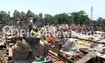 Ganesh idols Making Shelter Collapsed due to Rain
