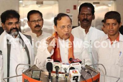 Photo Caption : Arun Singh, BJP Karnataka In charge addressing media during a meeting at BJP office, in Bengaluru on Sunday 5th June 2022