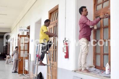 Photo Caption : Windows and doors cleaning works at Vidhana Soudha, in Bengaluru on Thursday 9th June 2022
