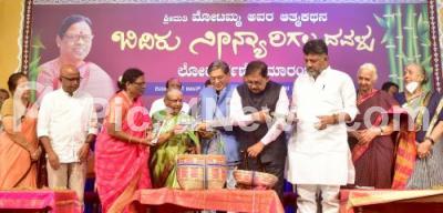 Former Union Minister SM Krishna releasing the Motamma Autobiography "Bidiru Neenyarigeilladavalu" at Ravindra Kalakshetra, also seen are KPCC President DK Shivakumar, Former DCM G Parameshwar, Former Governor Margaret Alva, Former Minister BT Lalita Nayak, Former Minister Motamma and others, in Bengaluru on Saturday 11th June 2022