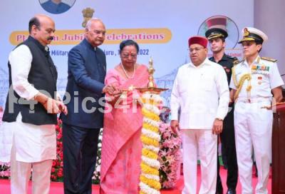 Event Description : President Ram Nath Kovind with First Lady Savita Kovind, Governor of Karnataka Thaawar chand Gehlot, Chief Minister of Karnataka Basavaraj Bommai and others during the Platinum Jubilee Celebrations of Rashtriya Military School, in Bengaluru on Monday 13th June 2022