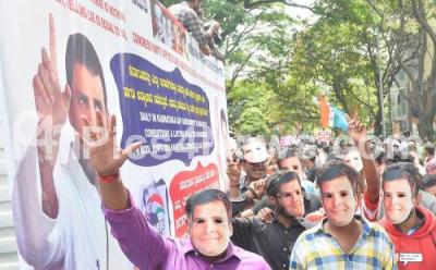 Photo Caption : Congress workers protesting against ED summons of party leader Rahul Gandhi for questioning in the National Herald case, in Bengaluru on Thursday 16th June 2022