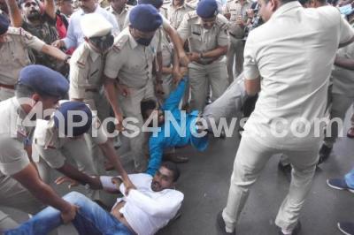 Photo Caption : Congress leaders detained by police during their protest against ED summons of party leader Rahul Gandhi for questioning in the National Herald case, in Bengaluru on Thursday 16th June 2022