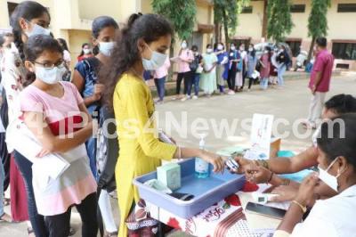 Students appeared for CET exams with covid-19 precautions at Govt. School, Malleshwaram, in Bengaluru on Thursday 16th June 2022