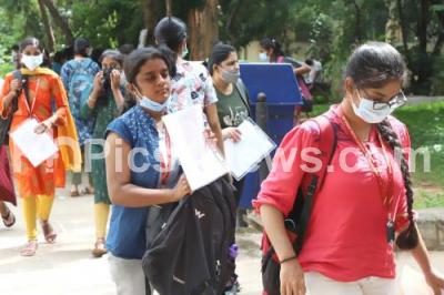 Photo Caption : Students appeared for CET exams with covid-19 precautions at Govt. School, Malleshwaram, in Bengaluru on Thursday 16th June 2022