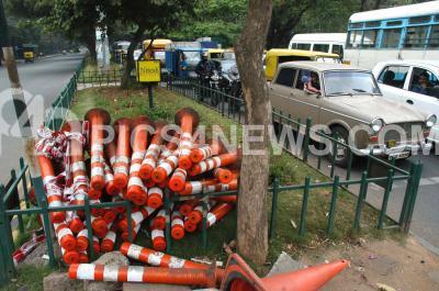 Auto lane dividers being dumped at Cubbon Road, in Bangalore on Tuesday 18th Dec 2007.