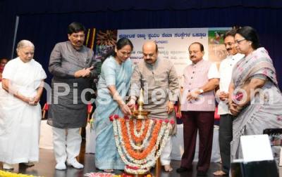 Photo Caption : Chief Minister Basavaraj Bommai inaugurated the Karnataka State Voluntary Organizations Union Conference at Gandhi Bhavan, also seen are Union Minister Shobha Karandlaje, Minister Murugesh Nirani, Dr Somashekhar, Border Development Authority Chairman, Sushilamma, Chairperson of Sumangali Sevashrama, in Bengaluru on Wednesday 22nd June 2022