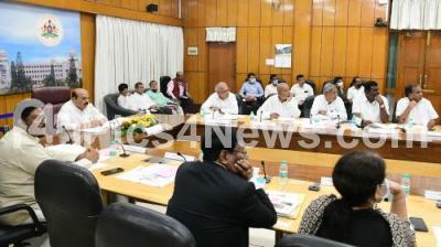 CM Basavaraj Bommai with Ministers Anand Singh, Halappa Achar, MP Karadi Sanganna and Koppal District MLAs during a meeting on Anjanadri Hill development, in Bengaluru on Saturday 25th June 2022