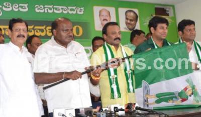 Bommanahalli Babu (Gold Babu) joined JD(S) party in the presence of Former CM and JD(S) leader HD Kumarswamy during a program at JD(S) office, in Bengaluru on Thursday 30th June 2022